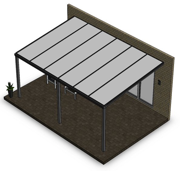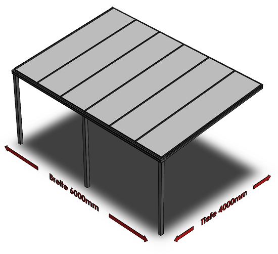 Überdachung mit 16 mm Polycarbonat, 6 x 4 m