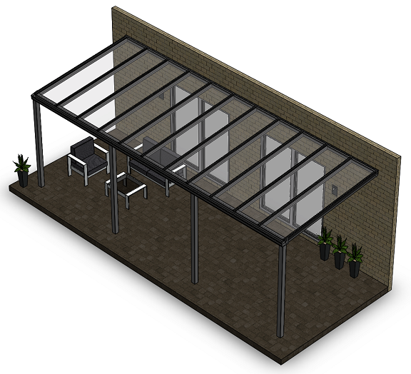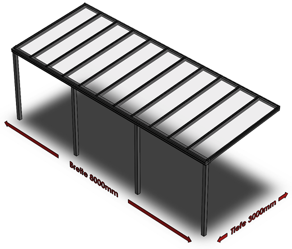 Überdachung mit VSG 8,76 mm klar, 8 x 3 m
