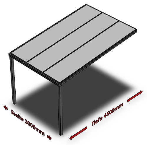 Überdachung mit 16 mm Polycarbonat, 3 x 4,5 m